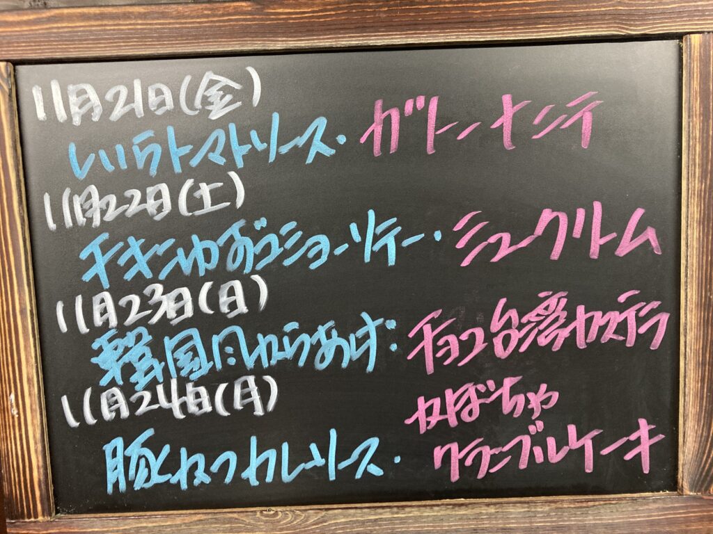 高知 カフェランチ 縁屋 メニュー 2025年11月21日(金)~11月 24日(月)香美市 土佐山田 メニュー 2025年11月21日(金)~11月 24日(月)香美市 土佐山田 11月 21日(金) しいらトマトソース・ガトーナンテ 11月 22日(土) チキンゆずコショーソテー・シュークリーム 11月 23日(日) 韓国風からあげ・チョコ台湾カステラ 11月 24日(月)豚かつカレーソース・かぼちゃクランブルケーキ この記事のタイトルとURLをコピーする 高知 カフェランチ 縁屋 メニュー 2025年11月14日(金)~11月 17日(月)香美市 土佐山田 前の記事 高知 カフェランチ 縁屋 メニュー 2025年11月28日(金)~12月 1日(月)香美市 土佐山田 次の記事