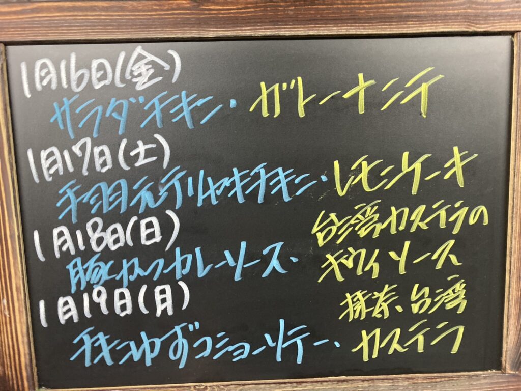 メニュー 2026年1月16日(金)~1月19日(月)