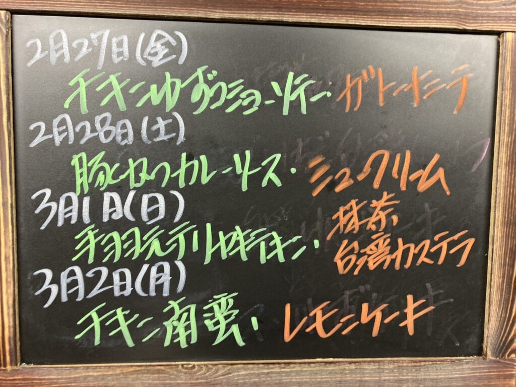 メニュー 2026年2月27日(金)~3月 2日(月)